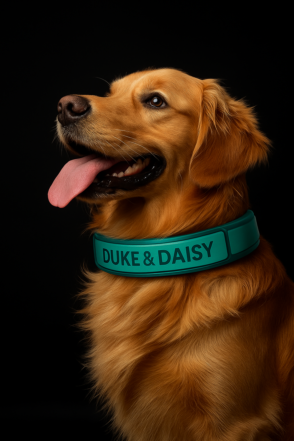 Made from eco-friendly recycled materials, the collar glows in the dark for safety and is fully waterproof.